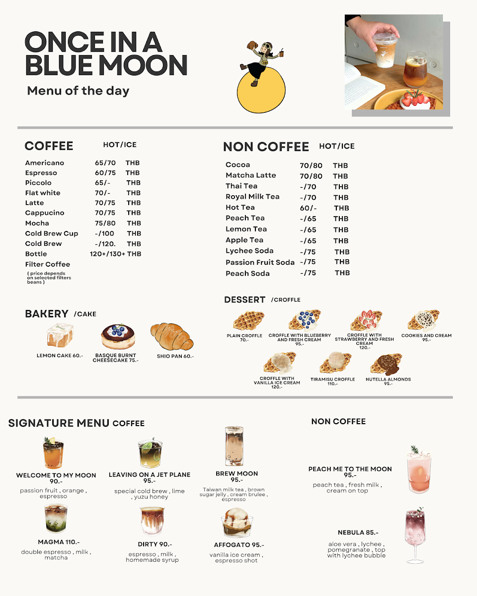 Welcome to Once in a Blue Moon Cafe & Hostel, a hidden gem nestled in the heart of Chiang Mai. This charming venue brilliantly combines the warm ambiance of a hostel with the inviting atmosphere of a cafe, making it perfect for travelers and locals alike. The menu offers a delightful selection of coffee options, with standout choices like the Dirty Latte, Iced Americano, and Oat Flat White, praised for their rich flavors and high-quality beans.